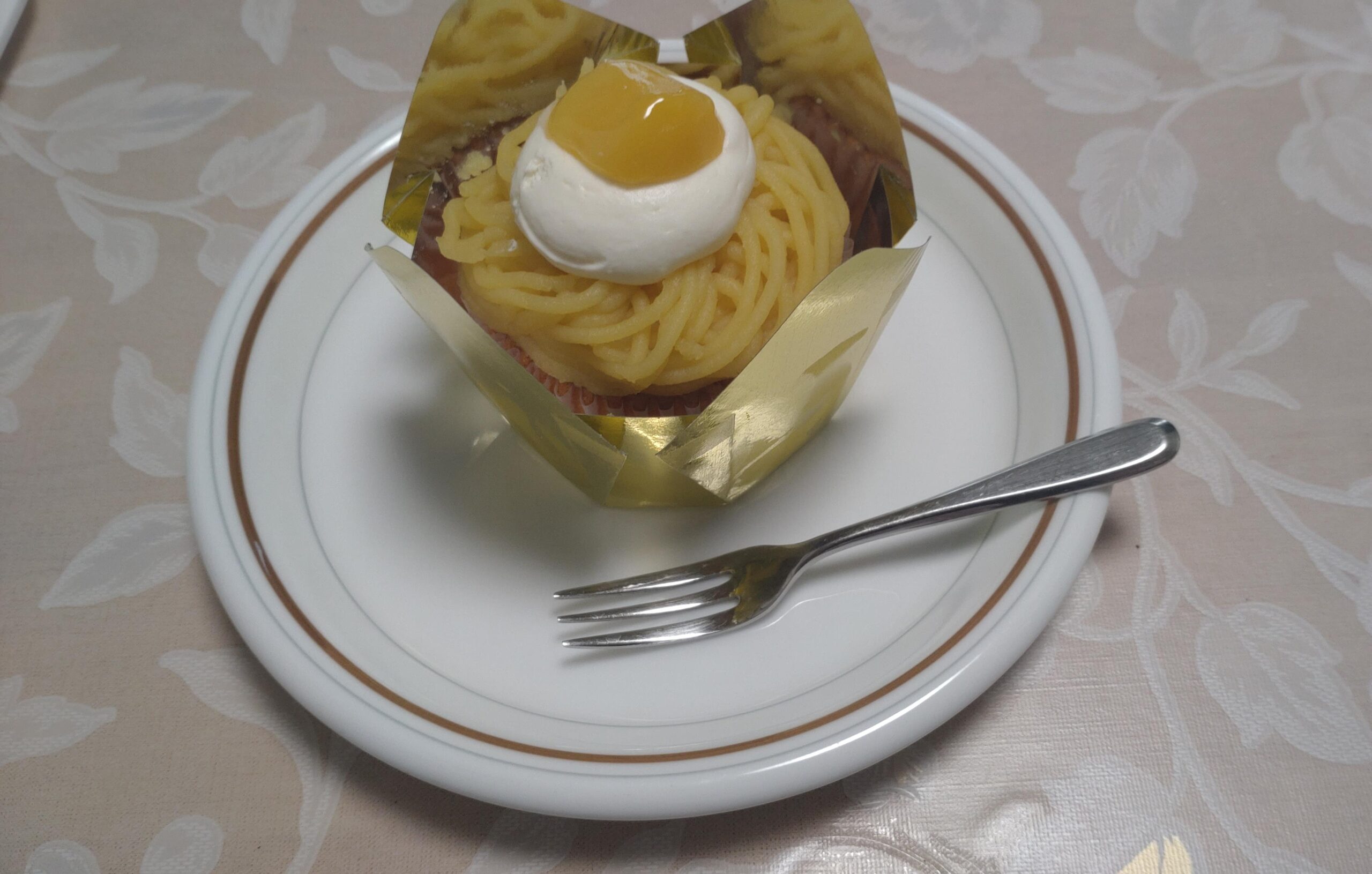味は甘すぎないマロンクリームとホイップが口の中で溶け合ってマロンだけに(まろん)やかな味わいです。スポンジの中にはカスタードクリームが詰まっていて1粒で2度おいしいケーキです。今日も感謝のおやつをごちそうさまでした。