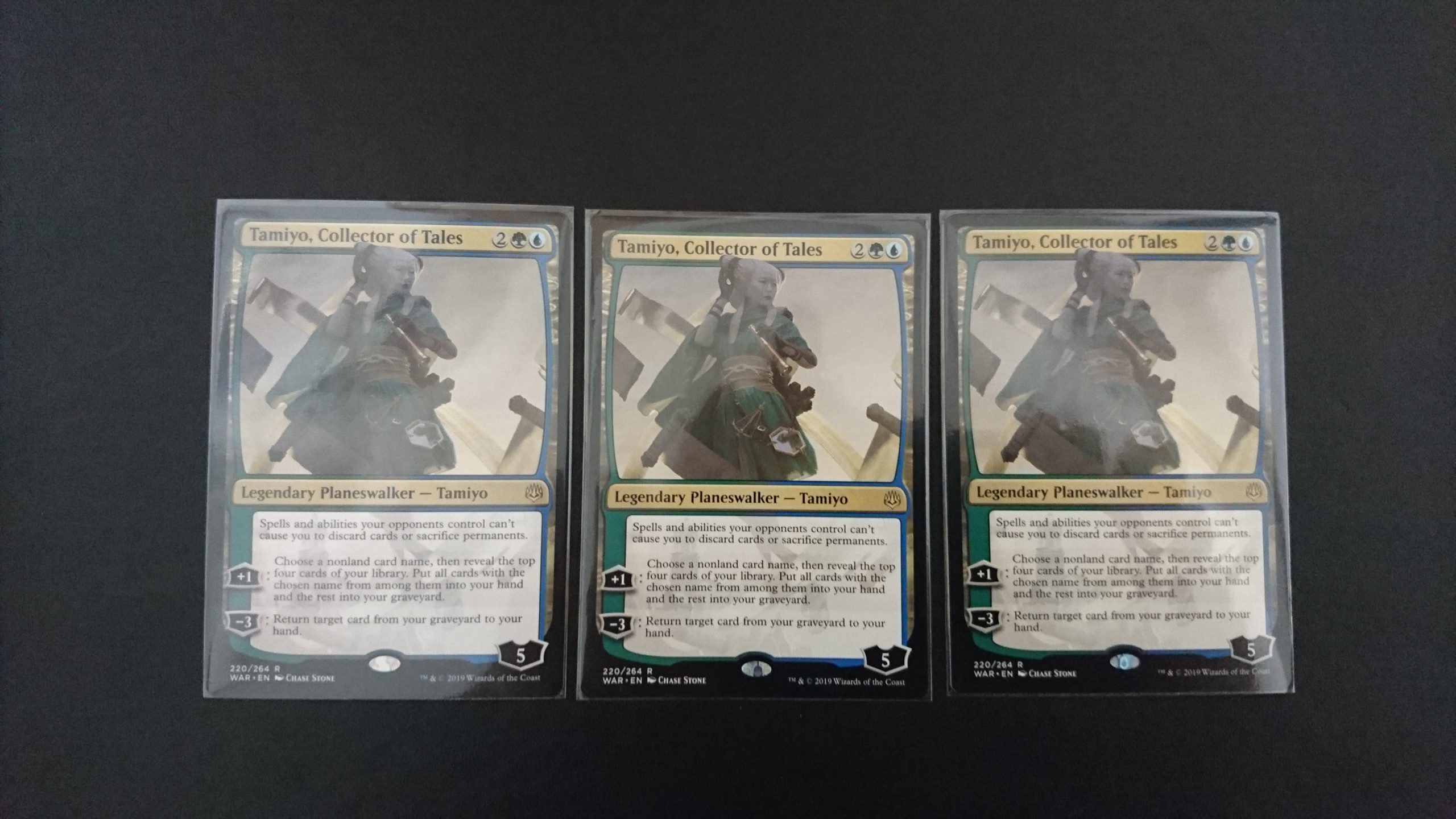 「灯争対戦」のプレインズウォーカーはそれぞれ常在型能力を持っておりタミヨウは「対戦相手のコントロールする呪文はあなたに手札を捨てさせることもパーマネントを生け贄にささげさせることもできない」です。忠誠度能力も疑似ルーター機能を持っており、パイオニアの「サメファイアーズ」に採用されています。