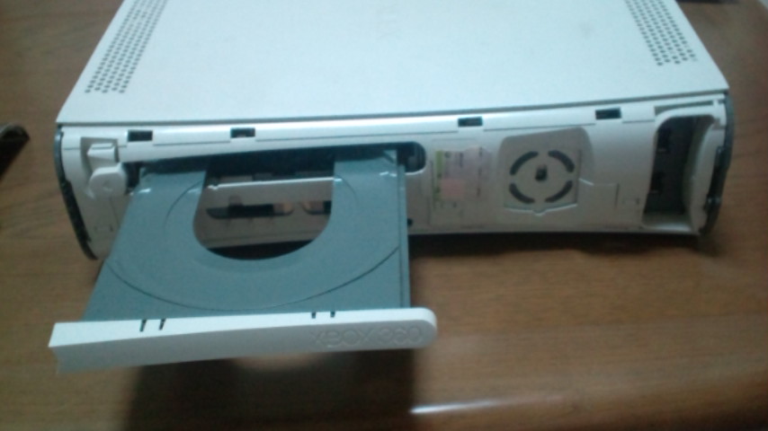 初期型Xbox360 のフェイスプレート自体は交換可能なのですが、DVDドライブのイジェクトボタンは本体を分解しないと交換できないようです。ネットで検索すると分解方法が載っていました。↓ 参考ページ